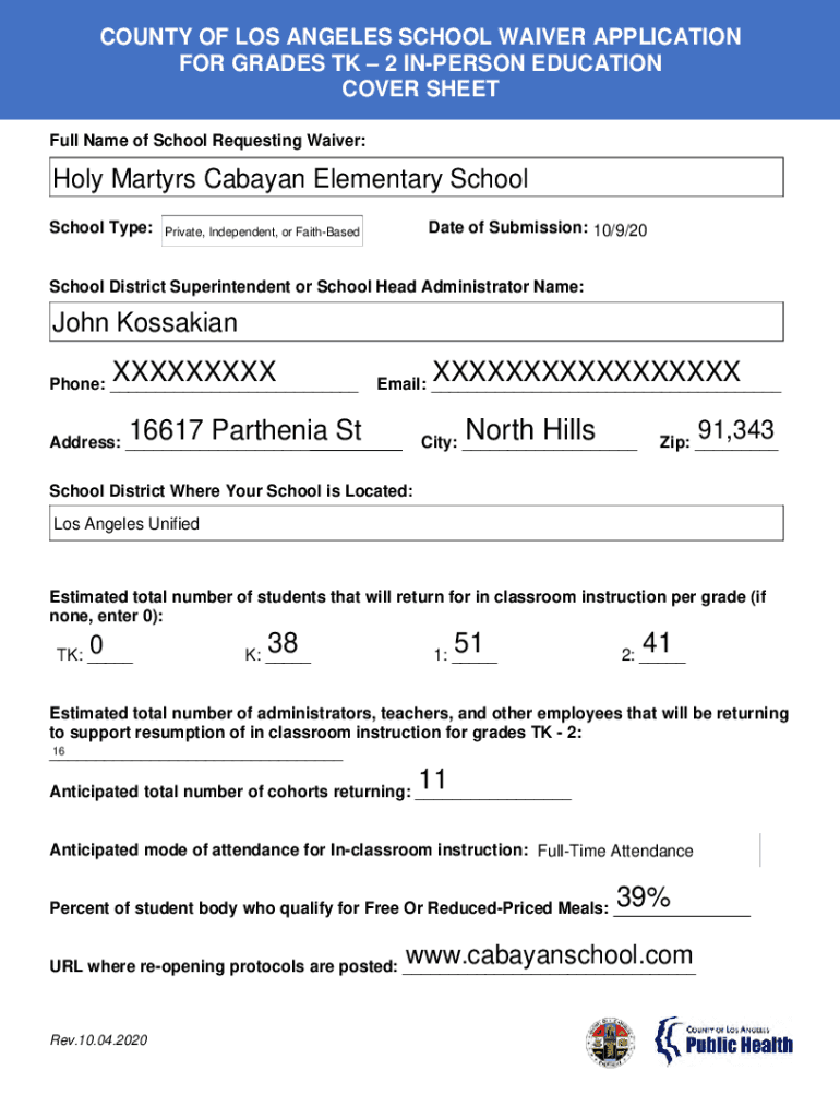 COUNTY OF LOS ANGELES SCHOOL WAIVER APPLICATION
