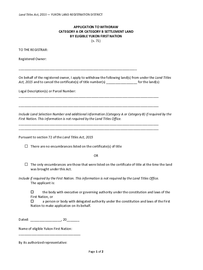 Land Titles Act, 2015 YUKON LAND REGISTRATION DISTRICTAPPLICATION TO WITHDRAW