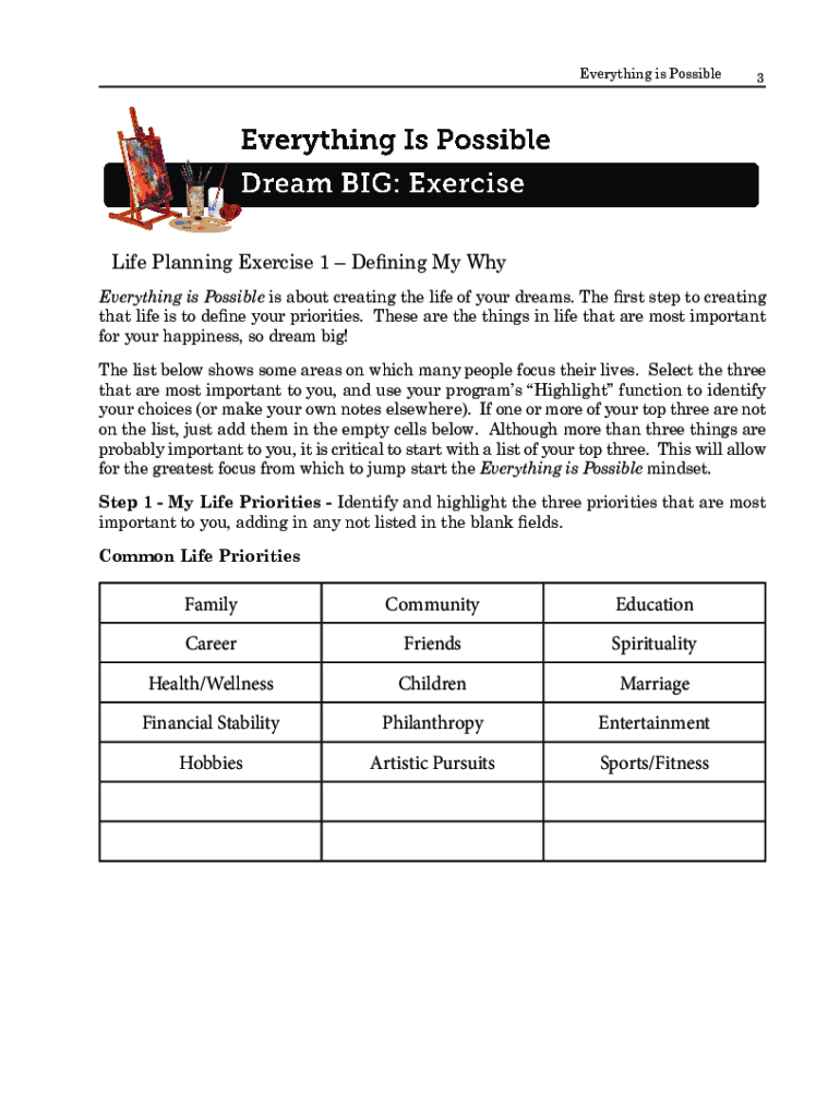 Life Planning Exercise 1 Defining My Why3Life Planning Exercise 2 My Dreams if I Had a Magic Wand5Life Planning Exercise 3 My Personal