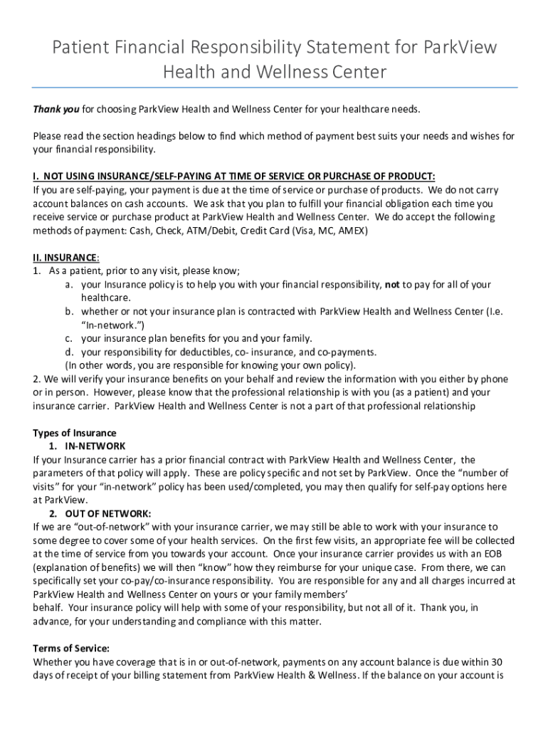 Patient Financial Responsibility Statement for Preview