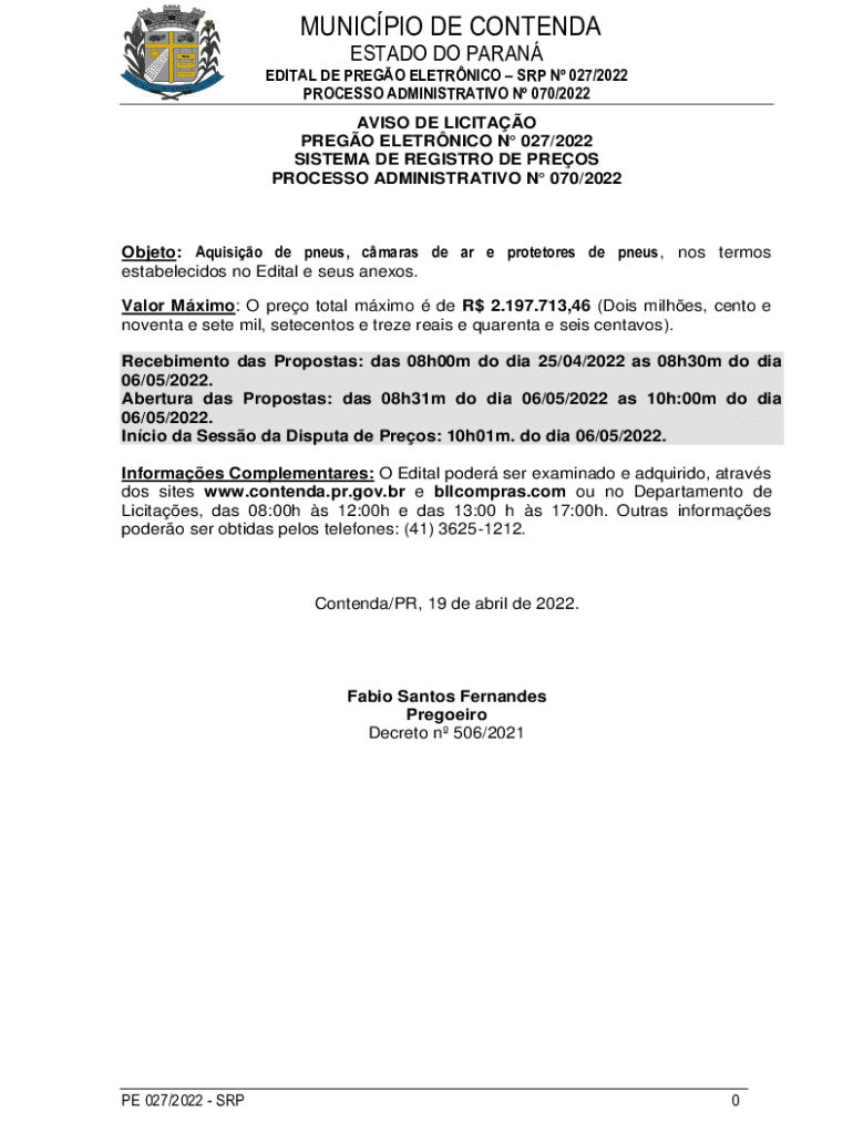 21 C O N T E N D A 141EDITAL DE PRESO ELECTRIC SRP N 027/2022