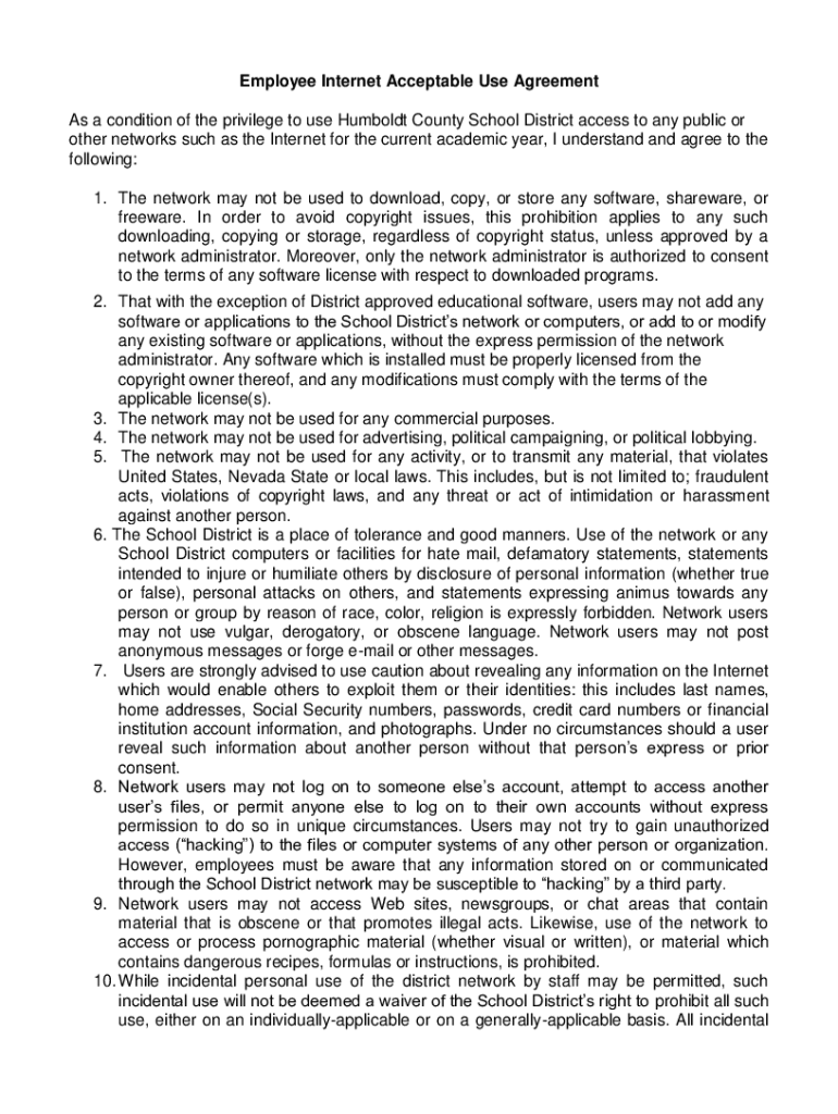 Get the free Employee Internet Acceptable Use Agreement