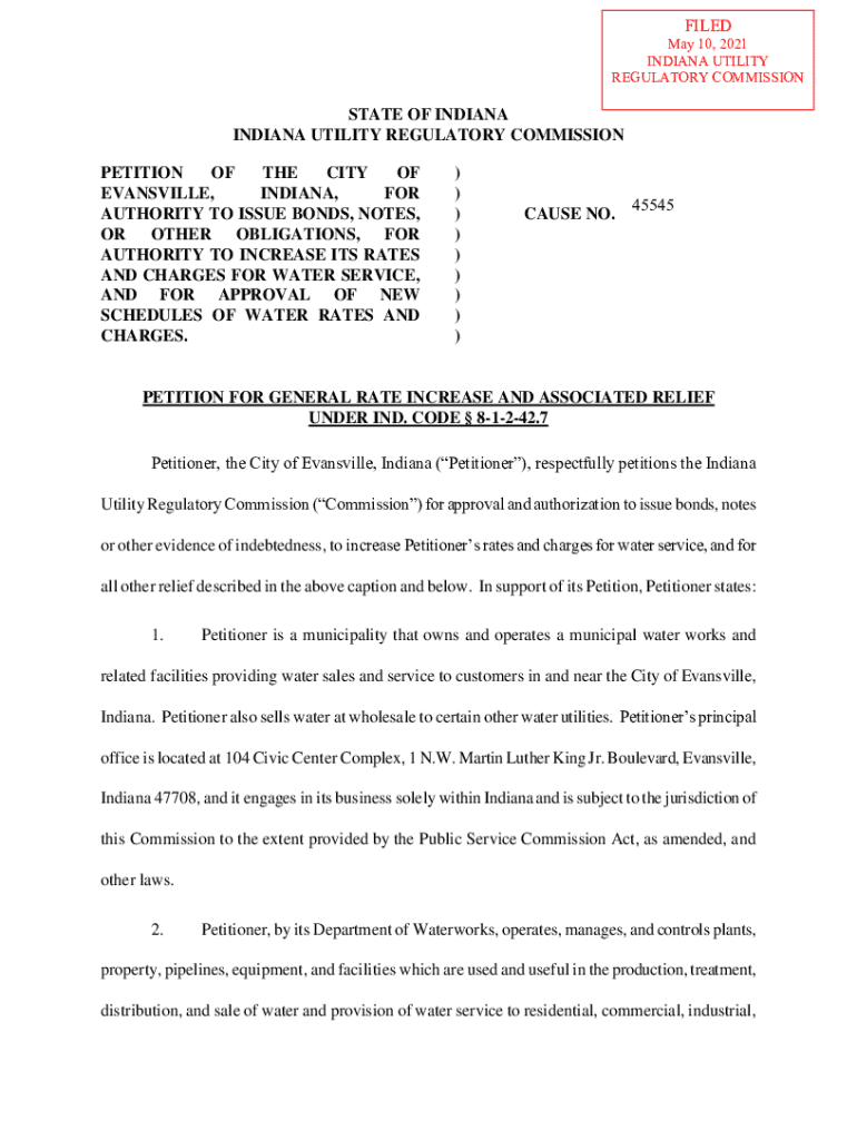FILEDMay 10, 2021 INDIANA UTILITY REGULATORY COMMISSIONSTATE OF INDIANA INDIANA UTILITY REGULATORY COMMISSION PETITION OF THE CITY OF EVANSVILLE, INDIANA, FOR AUTHORITY TO ISSUE BONDS, NOTES, OR OTHER