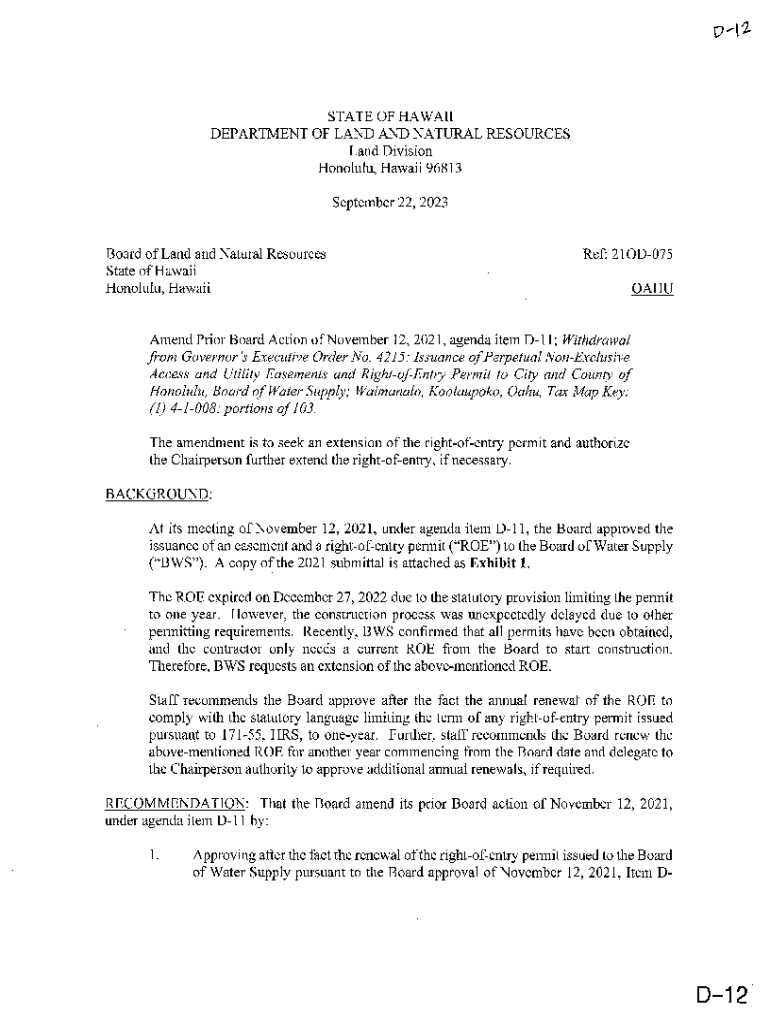 DEPARTMENT OF LAND AND NATURAL RESOURCES