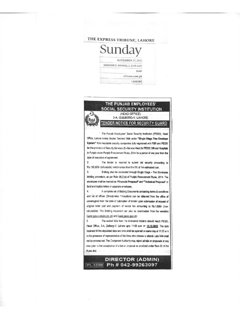 SECURITY INSTITUTION (PEPSI)Bidding DocumentTENDER