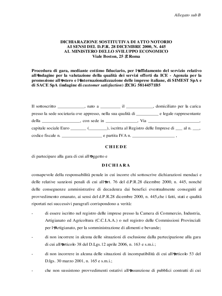 Allegato sub BDICHIARAZIONE CONSTITUTIVE DI AUTO NOTORIOUS