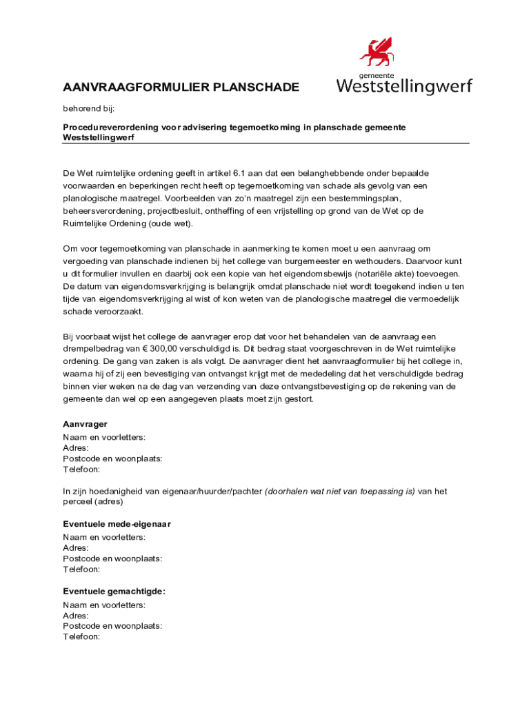 AANVRAAGFORMULIER PLANSCHADE