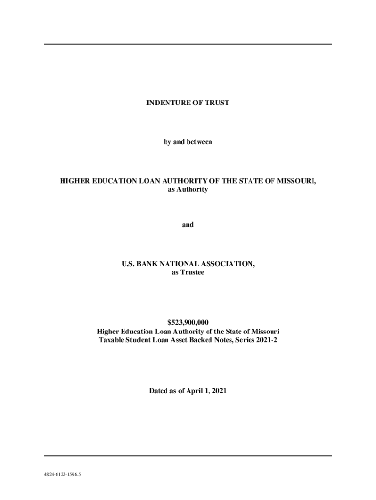 INDENTURE OF Trusty and betweenHIGHER EDUCATION LOAN AUTHORITY OF THE STATE OF MISSOURI, as AuthorityandU. S. BANK NATIONAL ASSOCIATION, as Trustee$523,900,000 Higher Education Loan Authority of the