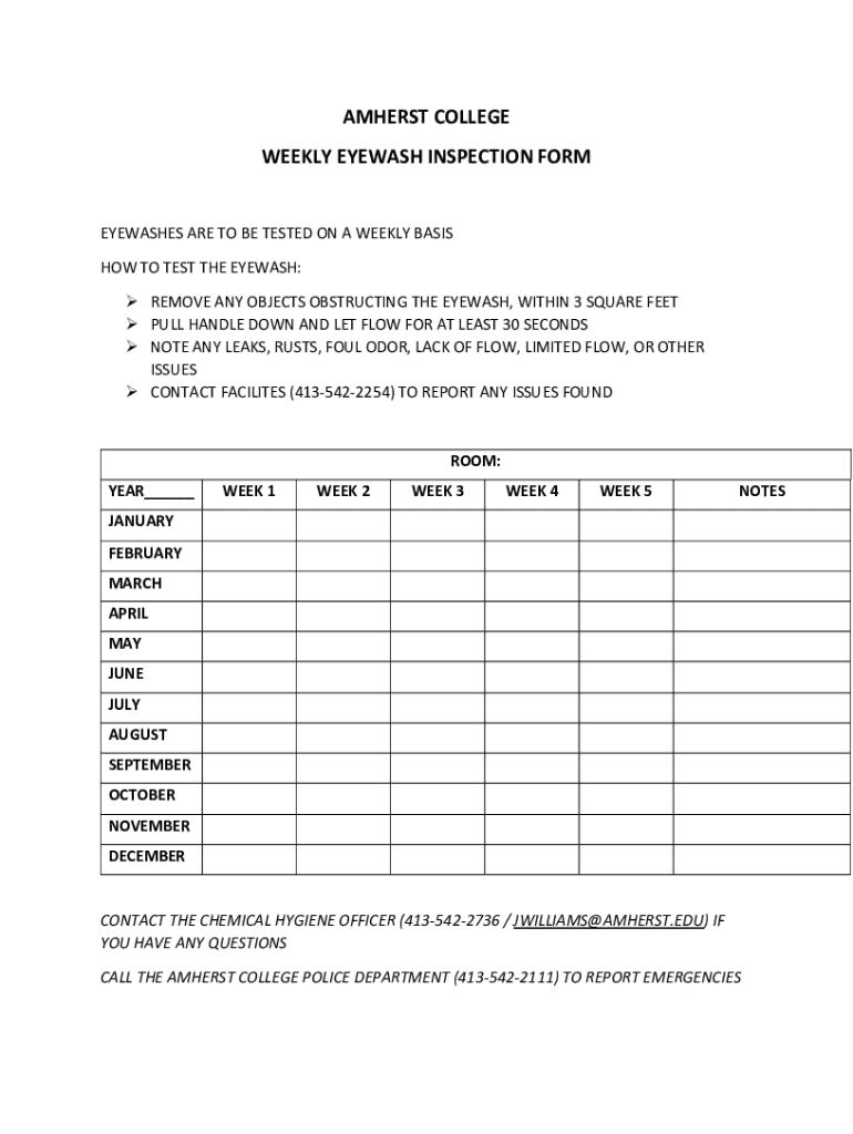 Get the free AMHERST COLLEGE WEEKLY EYEWASH INSPECTION FORM