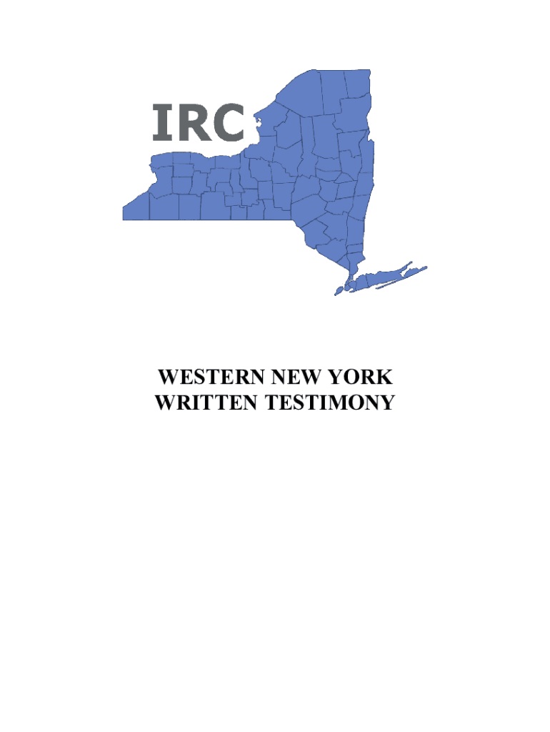 WESTERN NEW YORK WRITTEN TESTIMONY March 6, 2023 Re: New York State Independent Redistricting Commission To Whom It May Concern:We write to you today to urge you not to divide the shared community