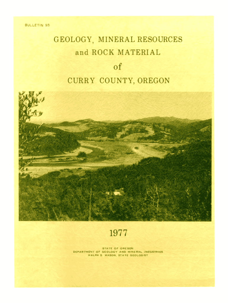 . GEOLOGY, M MINERAL RESOURCES and ROCK MATERIAL of CURRY COUNTY,OREGON1977 STATE OF OREGON DEPARTMENT OF GEOLOGY AND MINERAL INDUSTRIES RALPH SMASONSTATE GEOLOGIST.... \”\”...state OF OREGON