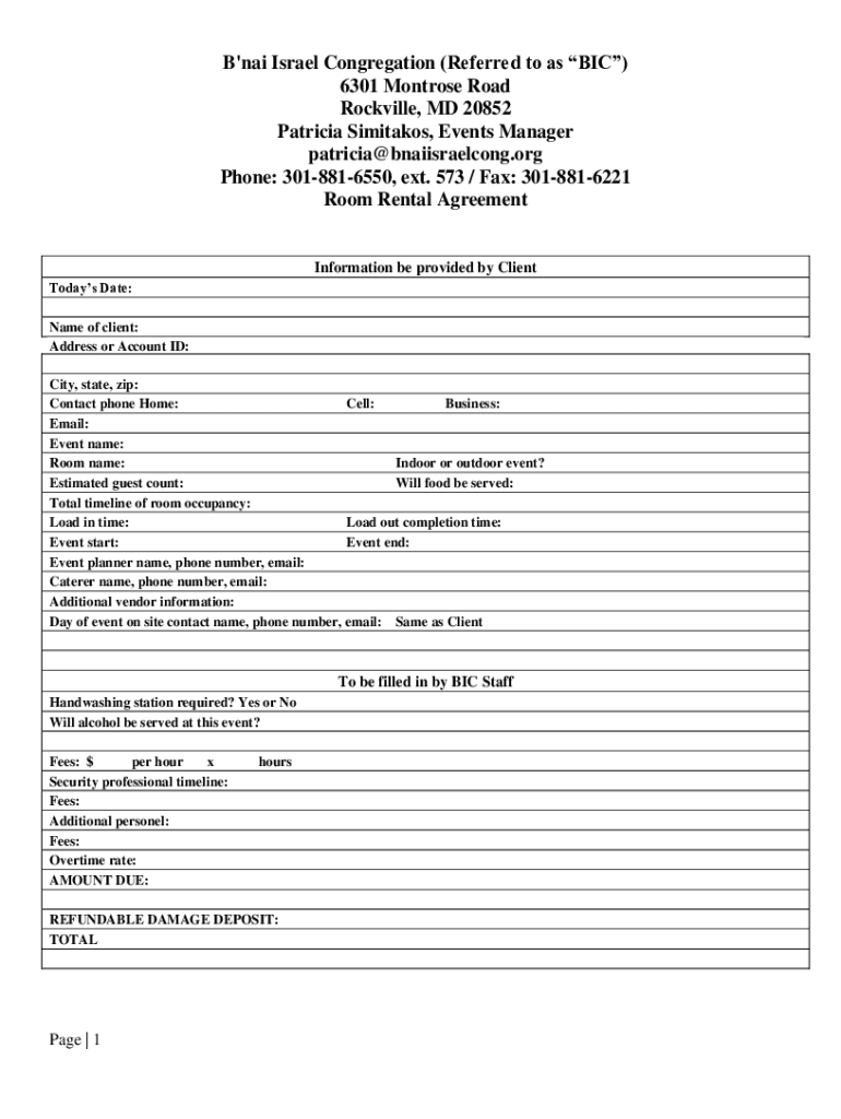 B\'Nazi Israel Congregation (Referred to as BIC) 6301 Montrose Road Rockville, MD 20852 Patricia Imitates, Events Manager patricia@bnaiisraelcong.org Phone: 3018816550, ext. 573 / Fax: 3018816221