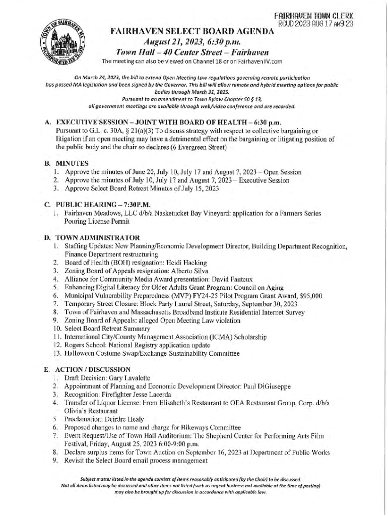 Joint with the Board of Health Monday, August 21, 2023Minutes
