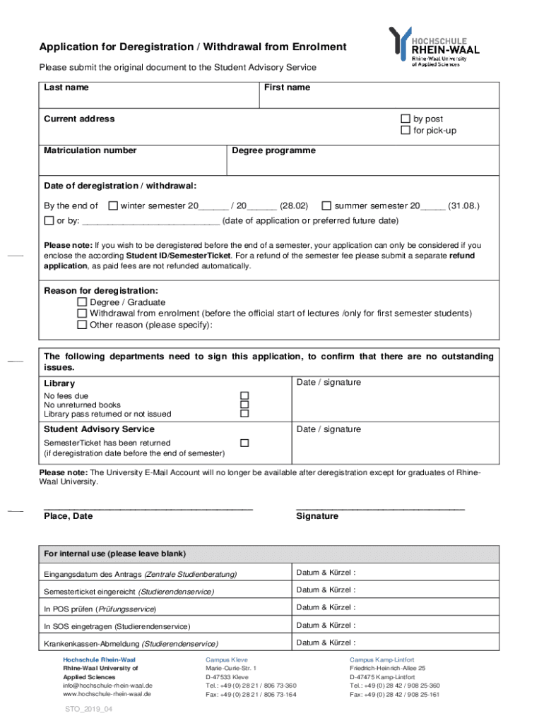 Get the free Application for Deregistration / Withdrawal from ... - AStA HSRW