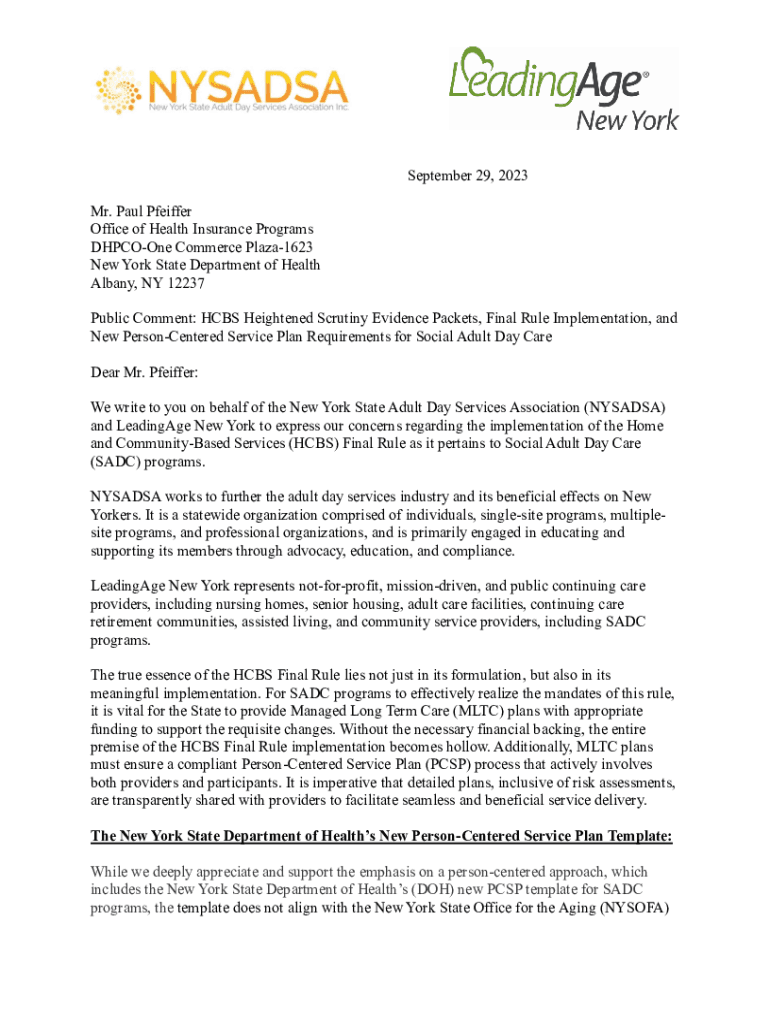 September 29, 2023, Mr. Paul Pfeiffer Office of Health Insurance Programs DHPCOOne Commerce Plaza1623 New York State Department of Health Albany, NY 12237 Public Comment: HUBS Heightened Scrutiny