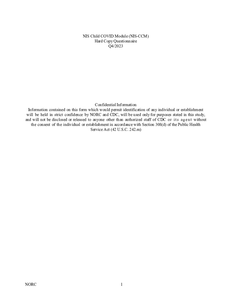 NIS Child COVID Module (NISCCM) Hard Copy Questionnaire Q4/2023Confidential Information Information contained on this form which would permit identification of any individual or establishment will