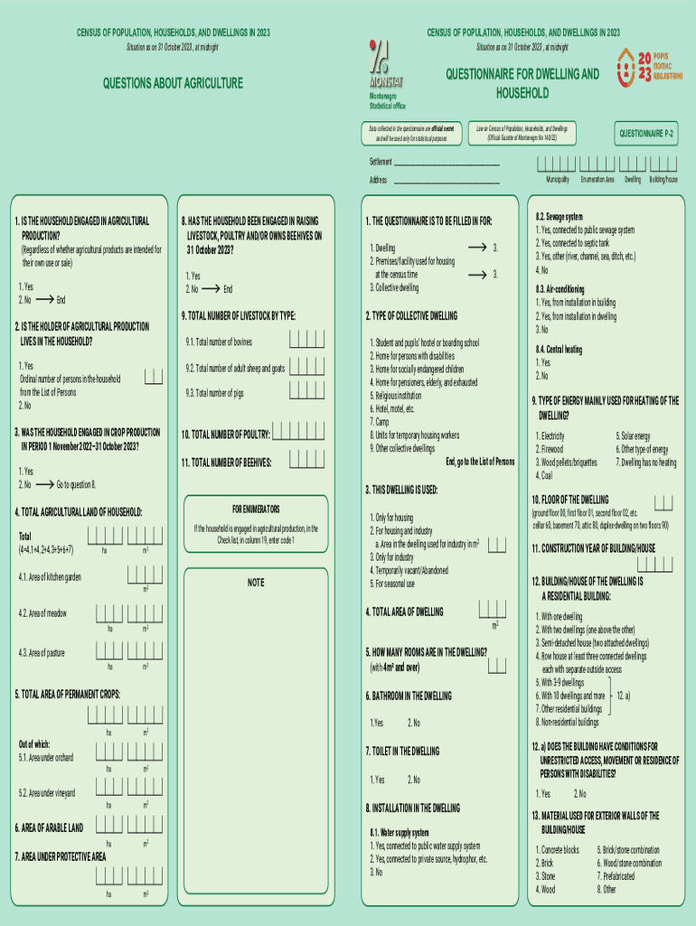 CENSUS OF POPULATION, HOUSEHOLDS, AND DWELLINGS IN 2023CENSUS OF POPULATION, HOUSEHOLDS, AND DWELLINGS IN 2023QUESTIONS ABOUT AGRICULTUREQUESTIONNAIRE FOR DWELLING AND HOUSEHOLDSituation as on 31