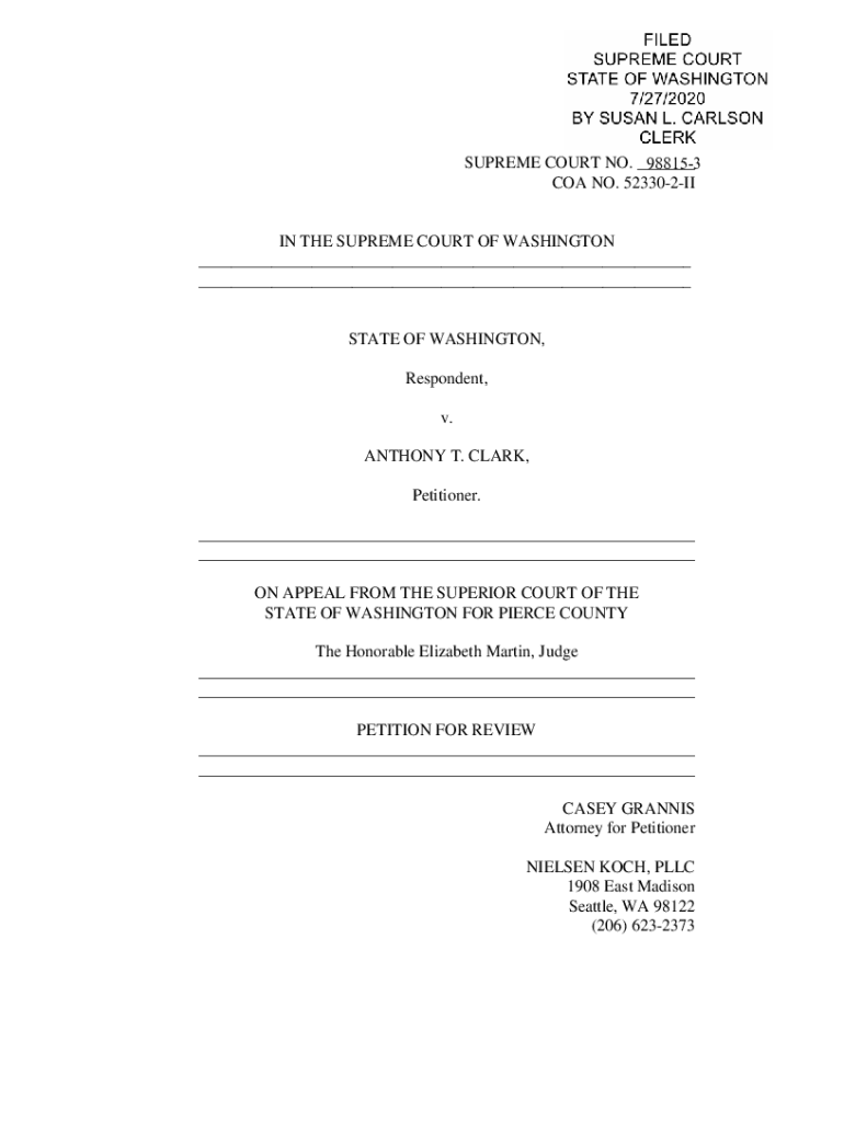 SUPREME COURT NO. ___ 988153 COA NO. 523302IIIN THE SUPREME COURT OF WASHINGTON ___ ___STATE OF WASHINGTON, Respondent, v. ANTHONY T. CLARK, Petitioner. ___ ___ ON APPEAL FROM THE SUPERIOR COURT OF