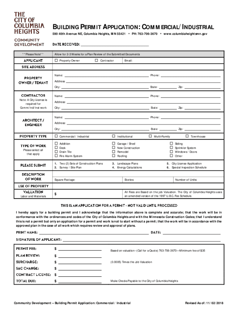 BUILDING PERMIT APPLICATION: COMMERCIAL/INDUSTRIAL