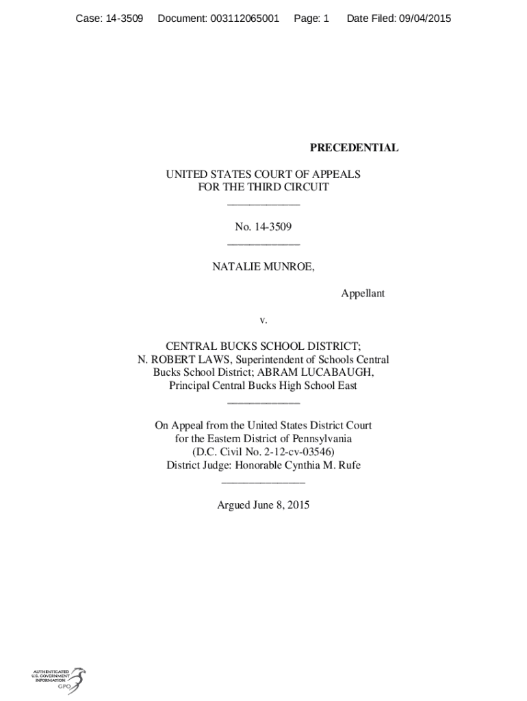 Case: 143509Document: 003112065001Page: 1Date Filed: 09/04/2015PRECEDENTIAL UNITED STATES COURT OF APPEALS FOR THE THIRD CIRCUIT ___ No. 143509 ___ NATALIE MONROE, Appellant v. CENTRAL BUCKS SCHOOL