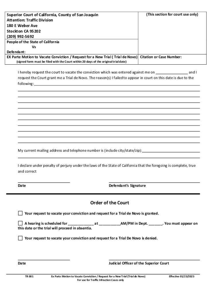 Get the free EX Parte Motion to Vacate Conviction / Request for a ...