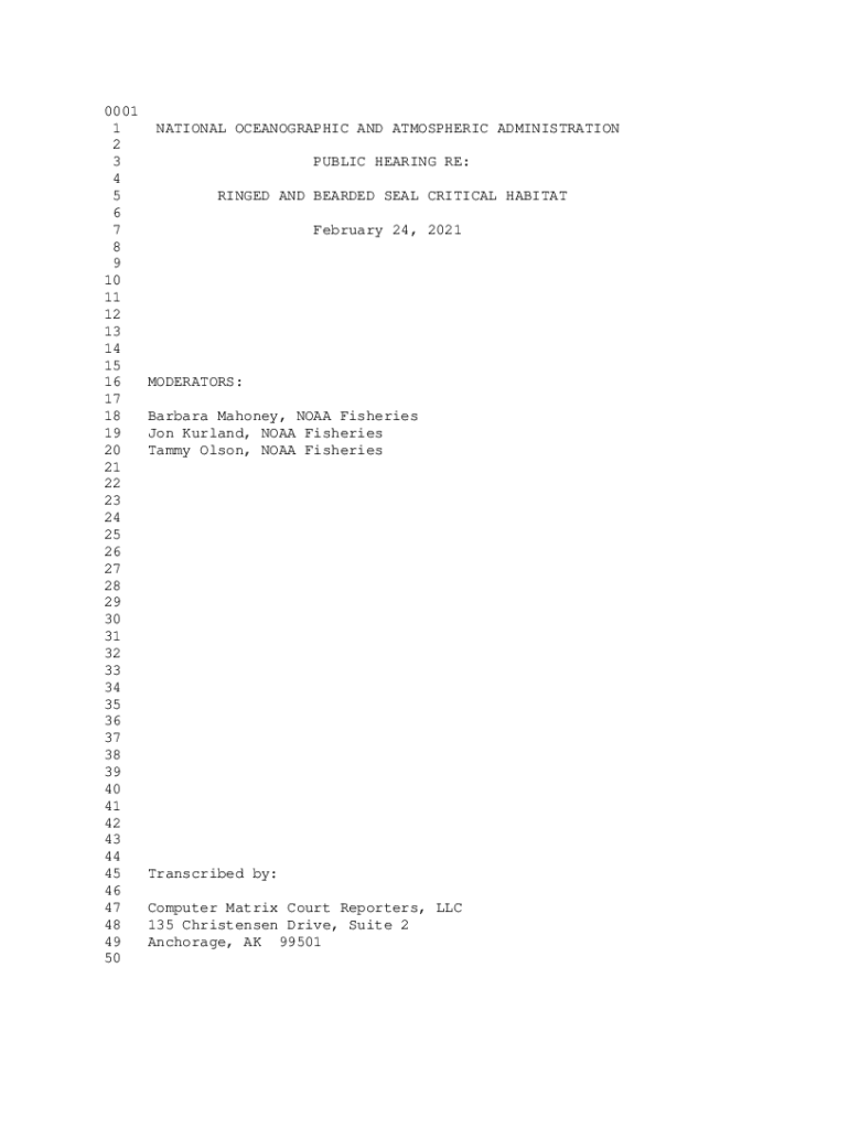 Get the free NOAA Public Hearing Proceedings Ringed and Bearded Seal Critical Habitat. NOAA Publi...
