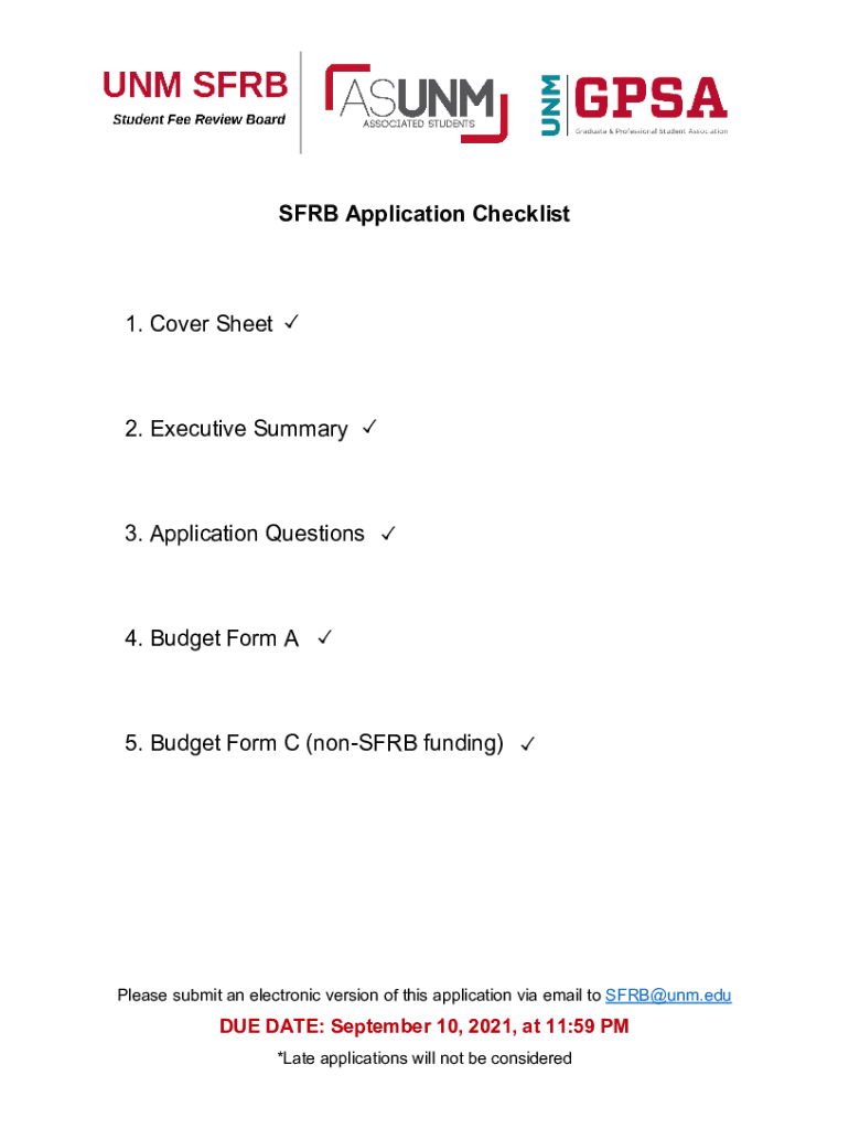 SERB Application Checklist1. Cover Sheet 2. Executive Summary 3. Application Questions 4. Budget Form A 5. Budget Form C (consort funding) Please submit an electronic version of this application via