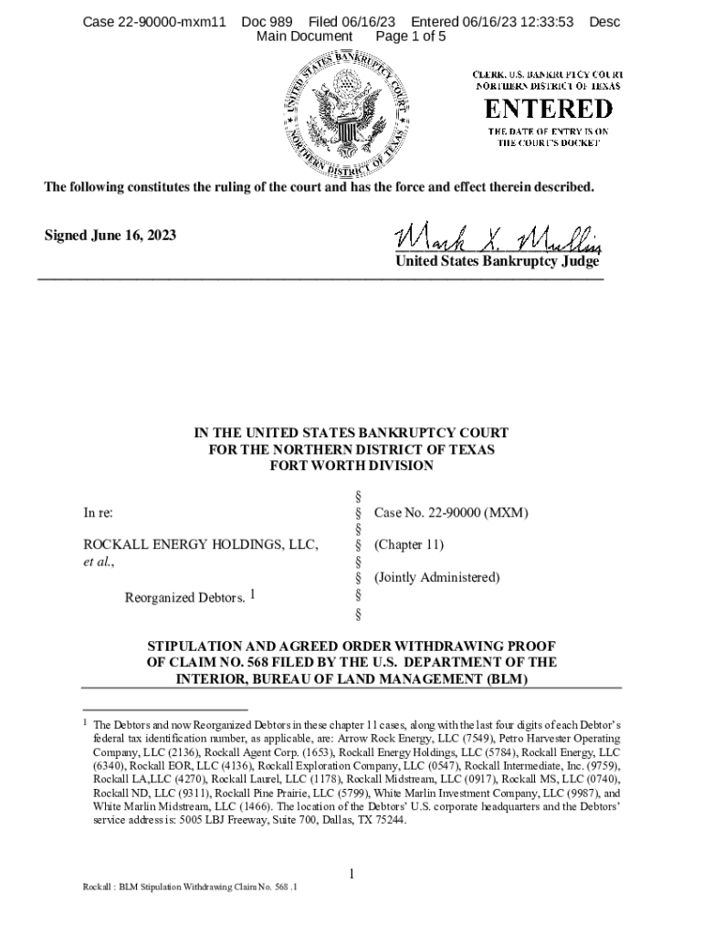 Get the free Rockall - DOI BLM Stipulation Withdrawing POC Claim No. 568