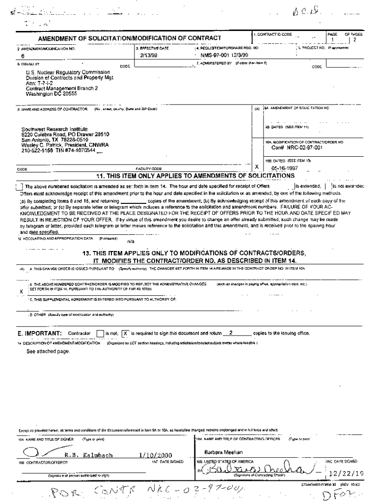 1\”CONTRACTAMENDMENT OF SOLICITATION/MODIFICATION OF CONTRACT
