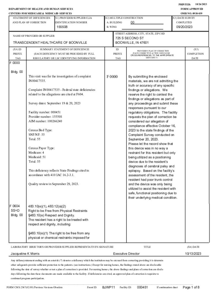 10/26/2023PRINTED: DEPARTMENT OF HEALTH AND HUMAN SERVICESFORM APPROVEDCENTERS FOR MEDICARE & MEDICAID SERVICES STATEMENT OF DEFICIENCIES(X1) PROVIDER/SUPPLIER/LIGAND PLAN OF CORRECTIONIDENTIFICATION