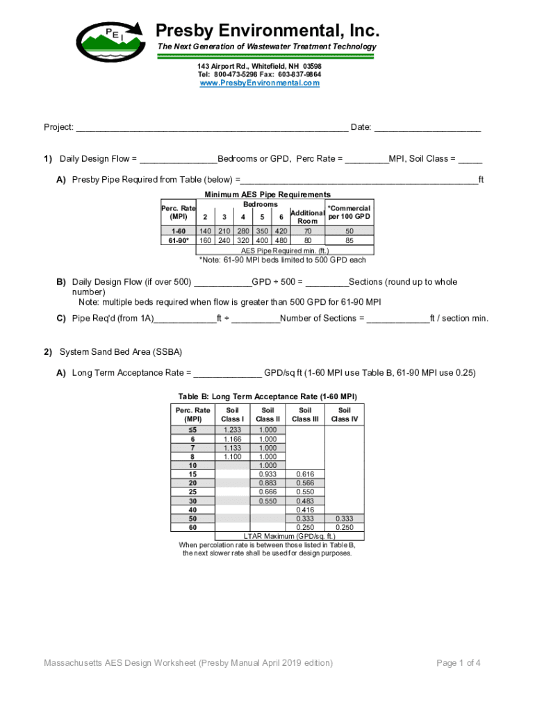 Pres by Environmental, Inc. The Next Generation of Wastewater Treatment Technology 143 Airport Rd., Whitefield, NH 03598 Tel: 8004735298 Fax: 6038379864www. PresbyEnvironmental.project: ___ Date: