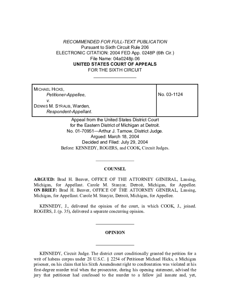 RECOMMENDED FOR FULLEST PUBLICATION Pursuant to Sixth Circuit Rule 206 ELECTRONIC CITATION: 2004 FED App. 0248P (6th Cir.) File Name: 04a0248p.06 UNITED STATES COURT OF APPEALS FOR THE SIXTH CIRCUIT