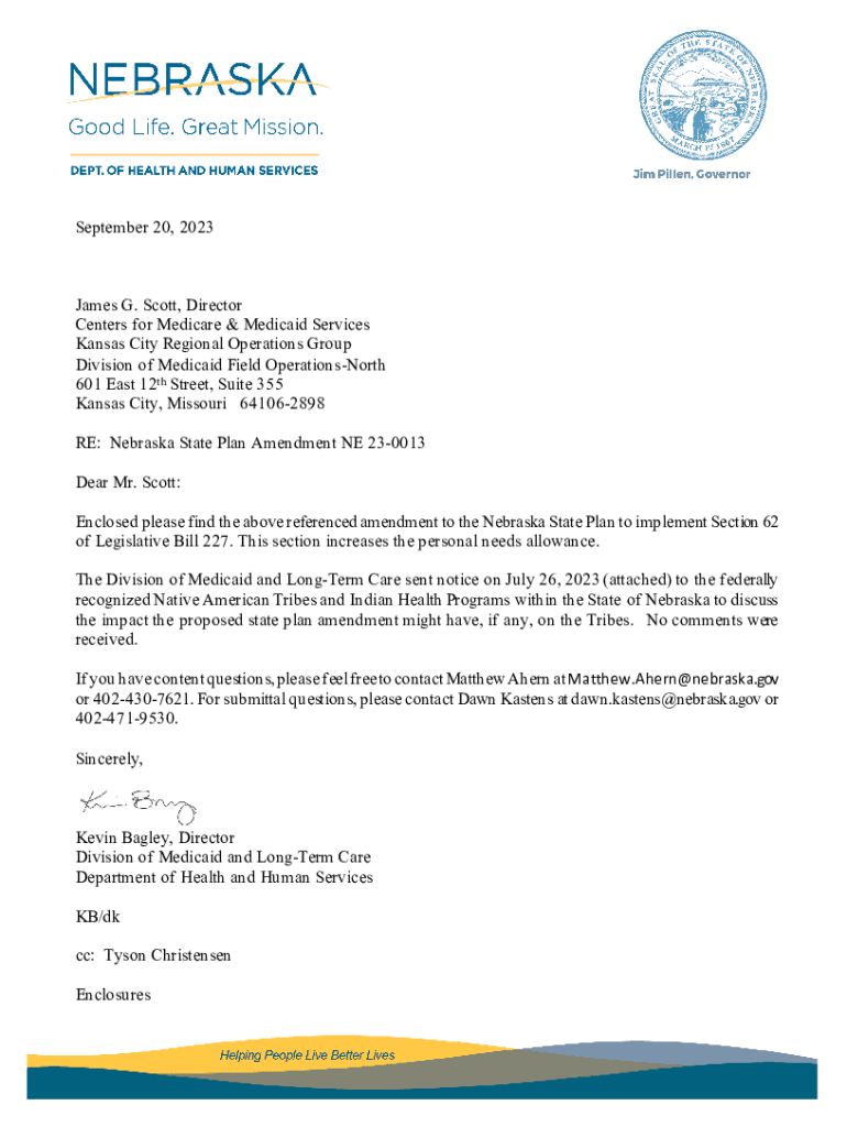 Get the free Michigan State Plan Amendment (SPA) 23-0020 - dhhs ne