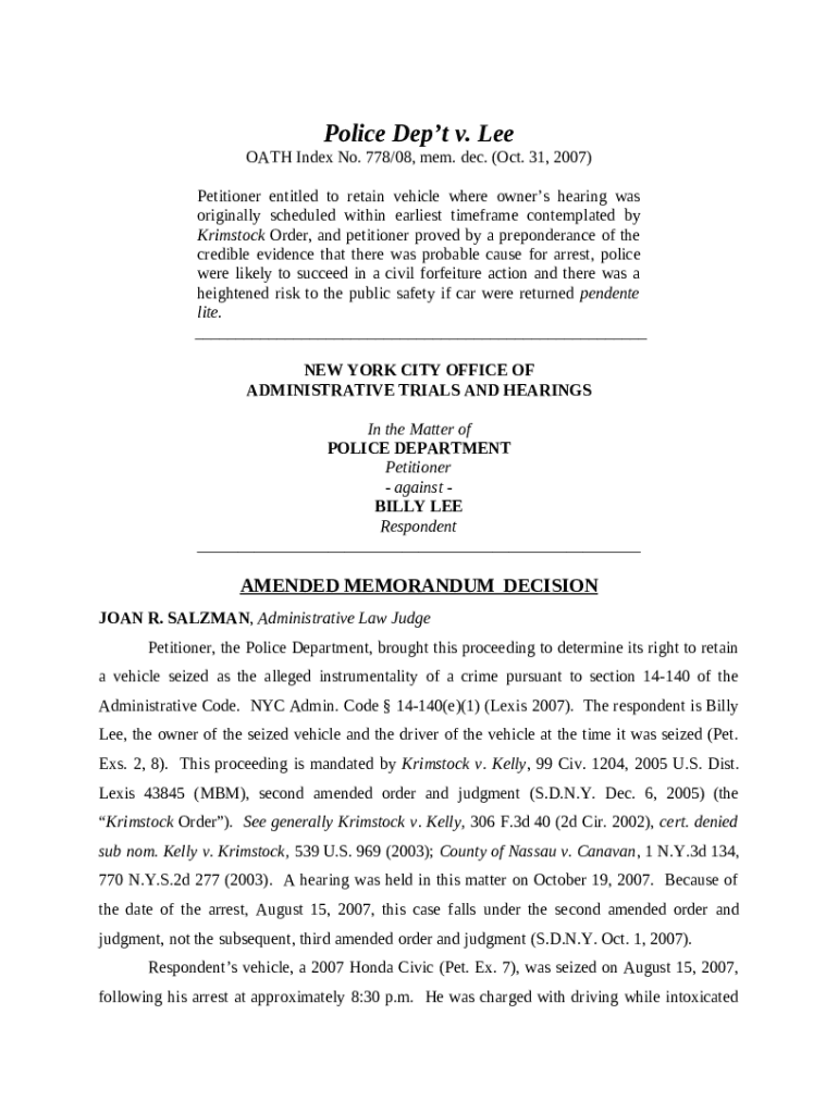 Online archive citylaw Police Dep't v. Lee template instructions