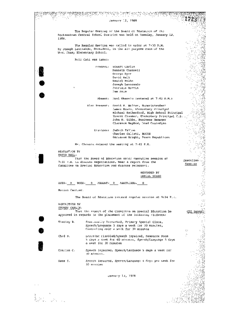 January 12, 198BThe Regular !\”meeting of the Board of Education of the