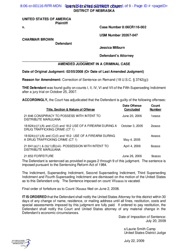 Get the free 8:06-cr-00116-RFR-MDN Doc # 754 Filed: 07/22/09 Page 1 of 9