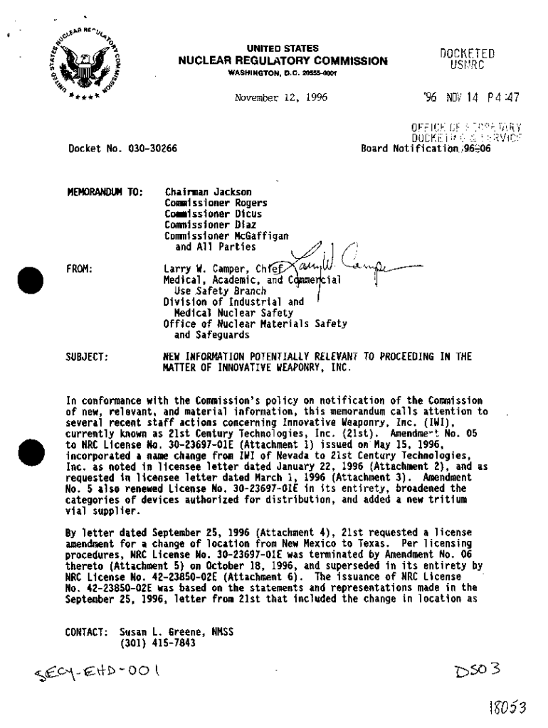 Get the free New Information Potentially Relevant to Proceeding in the Matter ...