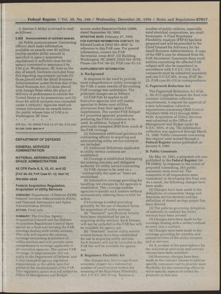 * Federal Register / Vol. 59, No. 248 / Wednesday, December 28, 1994 / Rules and Regulations 6 7 0 1 7 2. Section 5.303(a) is revised to read review under Executive Order 12866, as follows: Svdated