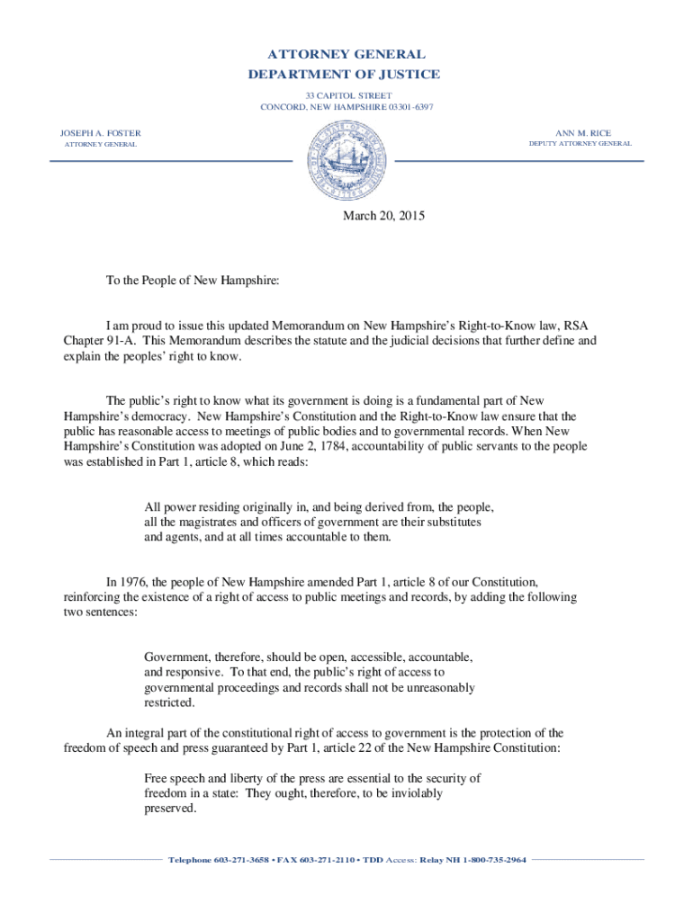 ANN M. RICEJOSEPH A. FOSTERDEPUTY ATTORNEY GENERALATTORNEY GENERAL March 20, 2015To the People of New Hampshire:I