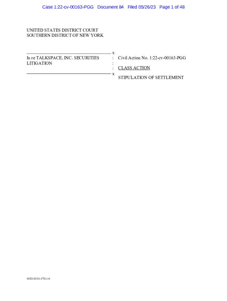 Get the free Talkspace Announces Proposed Settlement of Stockholder ...