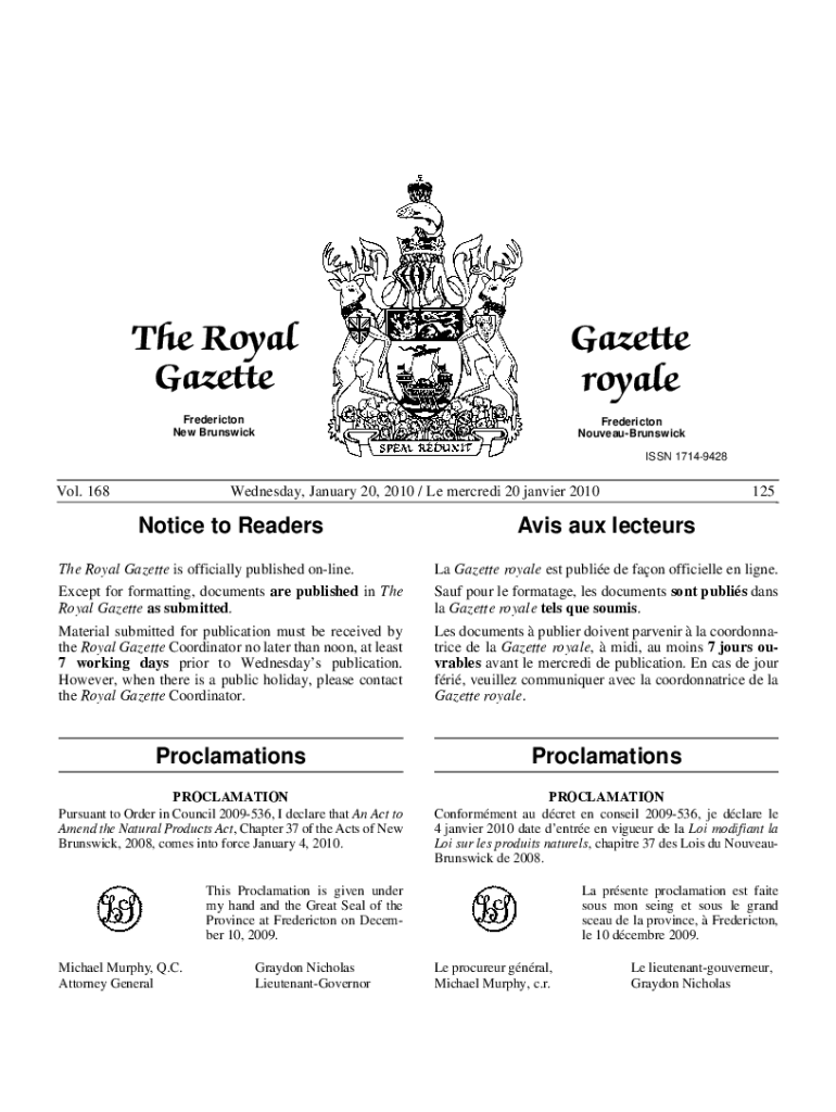 Obtenir le gratuit The Royal Gazette / Gazette royale (10/01/20) - www2 gnb