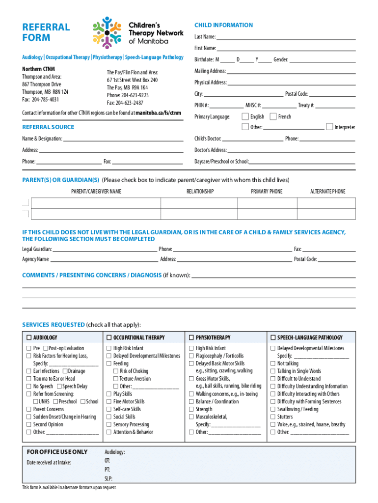 Get the free Children's Therapy Referral Form Northern ...