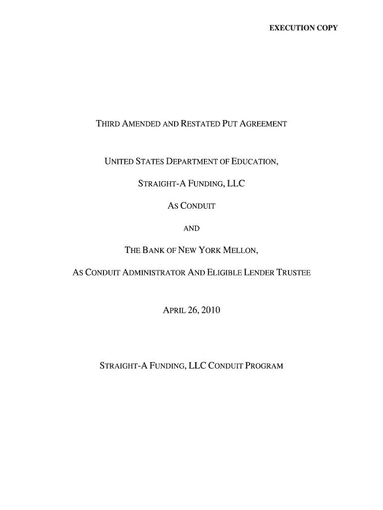Get the free Third Amended and Restated Put Agreement - ifap ed