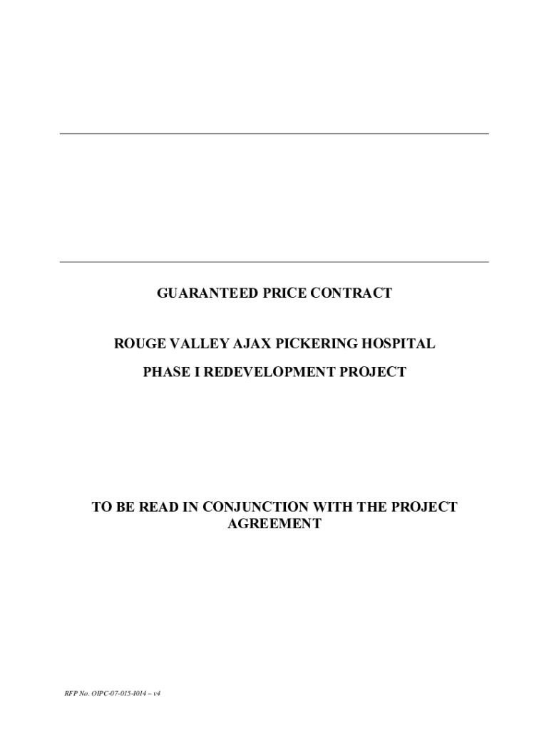 GUARANTEED PRICE CONTRACT ROUGE VALLEY AJAX PICKERING HOSPITAL PHASE I REDEVELOPMENT PROJECT TO BE READ IN CONJUNCTION WITH THE PROJECT AGREEMENT RFP No. OIPC07015I014 v4TABLE OF CONTENTS AGREEMENT
