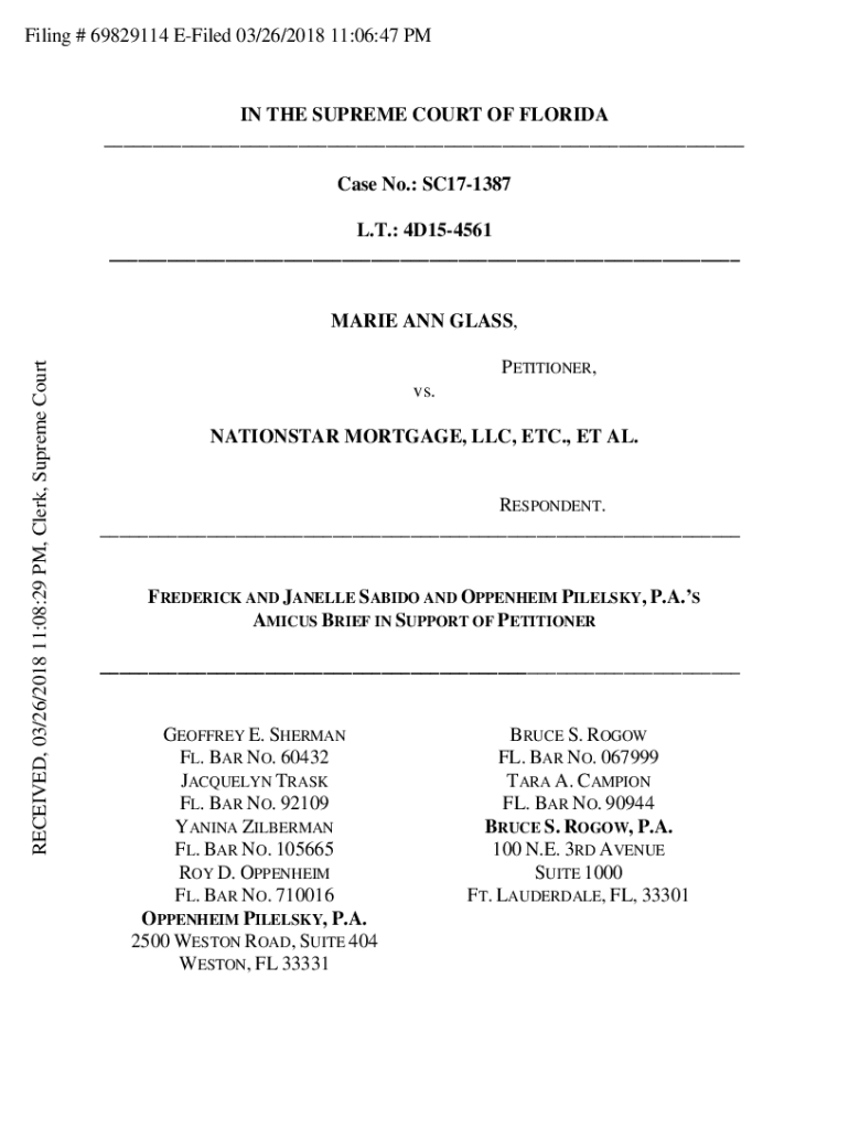Filing # 69829114 EFiled 03/26/2018 11:06:47 PMIN THE SUPREME COURT OF FLORIDA ___ Case No.: SC171387 L.T.: 4D154561 ___RECEIVED, 03/26/2018 11:08:29 PM, Clerk, Supreme CourtMARIE ANN GLASS, PETITIONER,