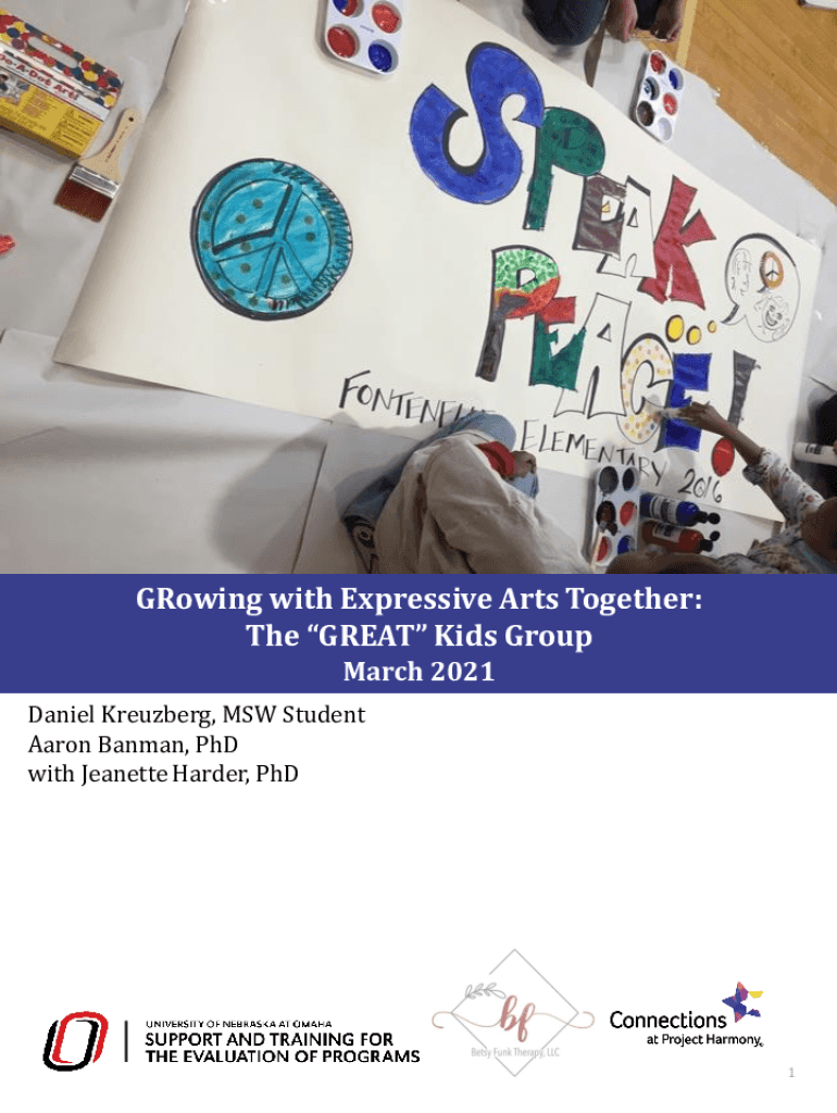 Growing with Expressive Arts Together: The GREAT Kids Group March 2021 Daniel Kreuzberg, MSW Student Aaron Batman, PhD with Jeanette Harder, PhD1Table of Contestable of Contents Introduction3Executive