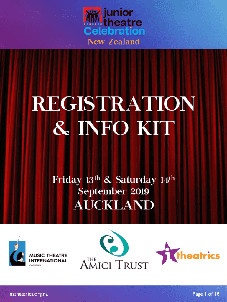 REGISTRATION & INFO KIT Friday 13th & Saturday 14th September 2019AUCKLANDnztheatrics.org.nzPage 1 of 18WELCOMEPlans are underway for our third JTCNZ which provides young musical theatre lovers from