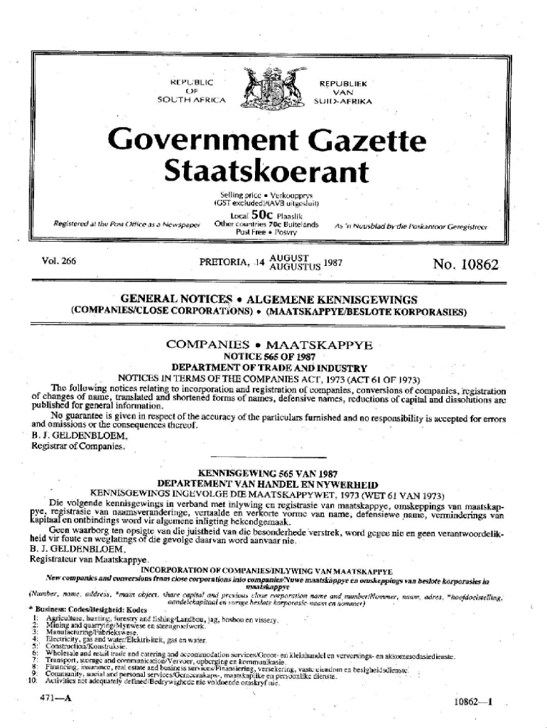 SUIDAFRIKAGovernment GazetteStaatskoerant