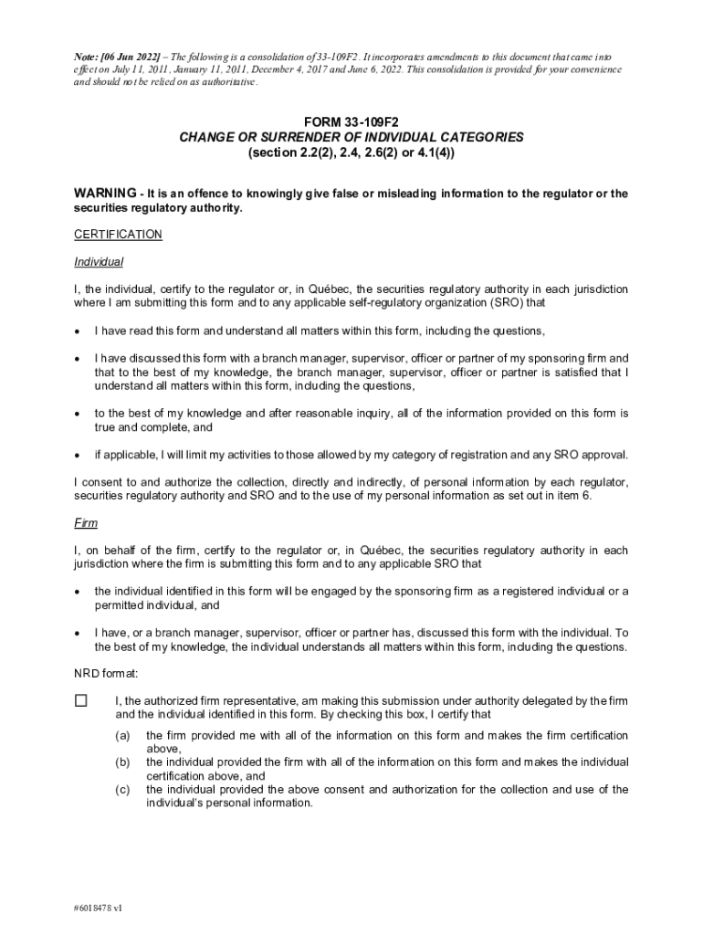 Get the free FORM 33-109F1 Notice Of End Of Individual Registration ...