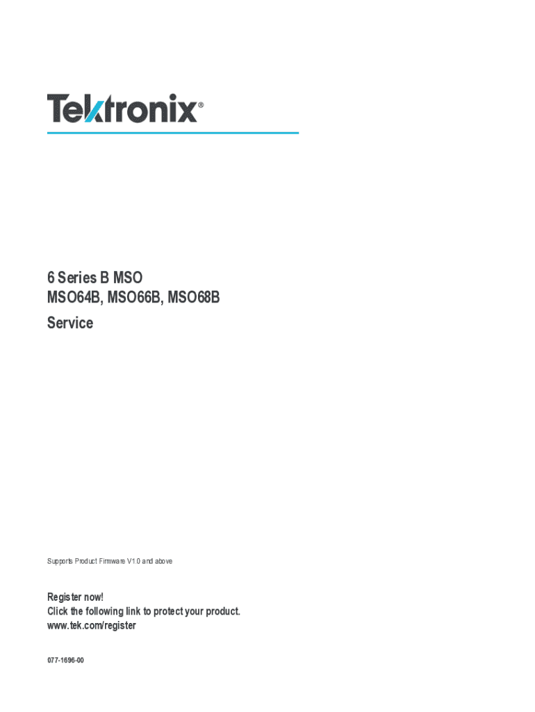 6 Series B MSO MSO64B, MSO66B, MSO68B ServiceSupports Product Firmware V1.0 and aboveRegister now! Click the following link to protect your product. www.tek.com/register 077169600Copyright Tectonic.